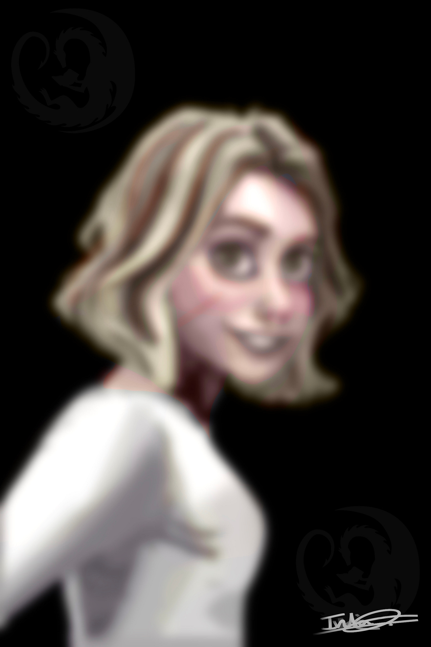 Emboldened by my sudden success, I also tried painting Sky. Unfortunately, unlike the first portrait, the details of Sky’s portrait didn’t exactly work out. But it passes the squint test (when artists squint to check visual design, contrast, and shape) so you guys get the blurry version! Someday, I’ll come back and finish this portrait.